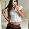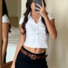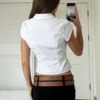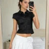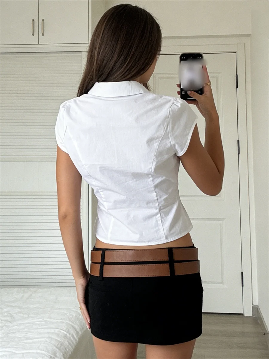 Women Button down Shirt Casual Solid Color Crop Short Sleeve Tops Blouse for Streetwear Aesthetic Clothes