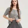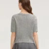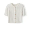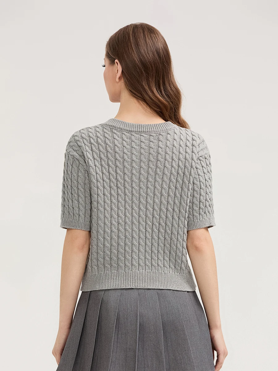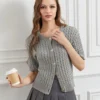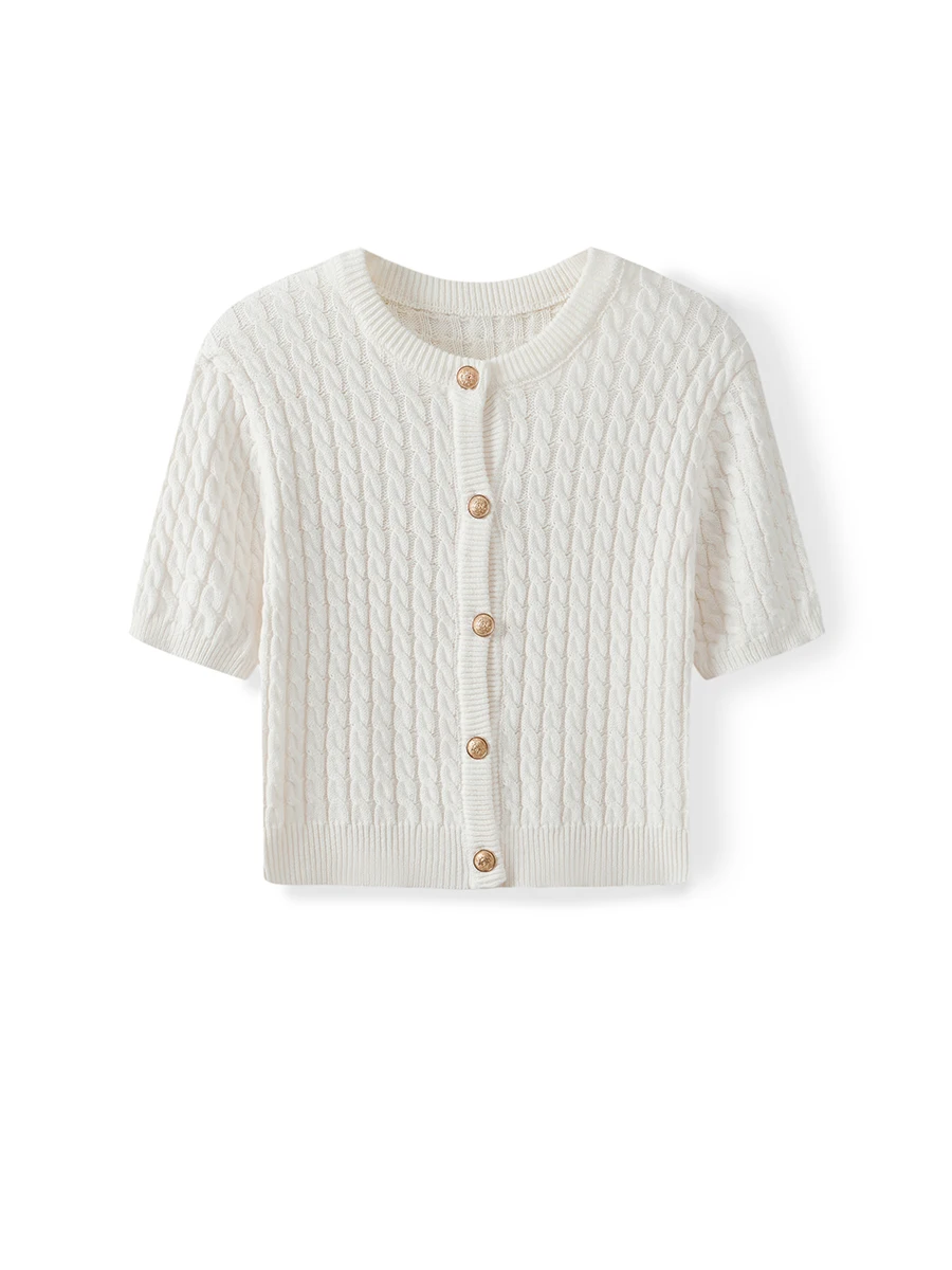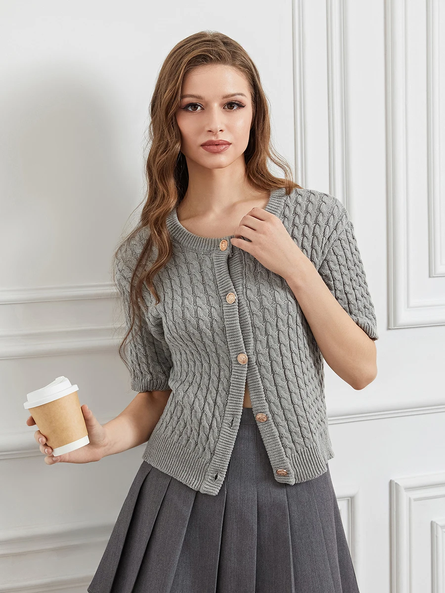 Women’s Cable Knit Cardigan Solid Color Round Neck Short Sleeve Button-front Closure Crop Sweaters