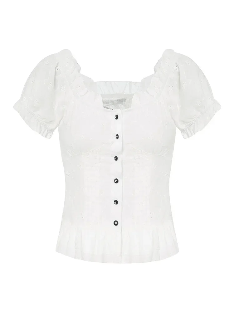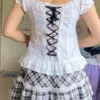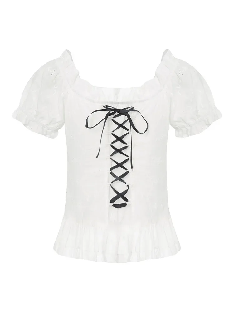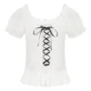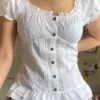 Womens Kawaii Corset Tops 2000s T-shirt Lace Trim Vintage Button V Neck Slim Tee Tops Summer y2k Shirts Harajuku